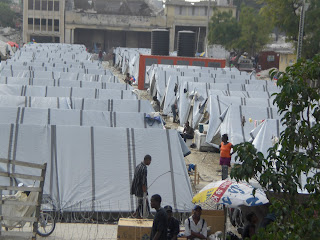 From patty to patty, block to block, pitiful tent city to supposed village, corner upon blunted corners, people are spread out in all shapes and directions wherever existence will allow it to thrive. They are utterly surviving on the streets not even a blanket to cover their souls from the torrential downpours, but perhaps a tattered piece of canvas strewn together by some duct tape or jagged pieces of wood or anything that closely resembles a possible solution or a cure. Here in Port-au-Prince, anything goes. A tarp tied together with rigid pieces of PVC molded in the shape of a shelter becomes suddenly a marvel of 21st century engineeering. Here in this country of dread and destruction, improvisation takes a new name, resources clawed out of dumpsters and trash from supposedly middle-class denizens, suddenly becomes something to sit on, something to put on, something to make life better to see yet another hopeful sunrise, another bitter sunfall.